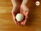 Aus einem der Teigstücke eine Kugel formen. Den Ball flach drücken.