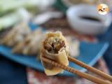Sie können die Gyoza mit der Füllung Ihrer Wahl garnieren. Zögern Sie nicht, das Huhn durch Garnelen, Schweinefleisch, Rindfleisch oder einfach ein anderes Gemüse wie zum Beispiel Chinakohl zu ersetzen.