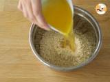 Die Aperitifkekse zu Pulver zerstoßen und die geschmolzene Butter dazugeben.