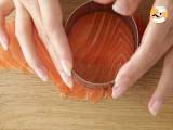 Aus den restlichen Räucherlachsscheiben mit einem Kreis Stücke ausschneiden.