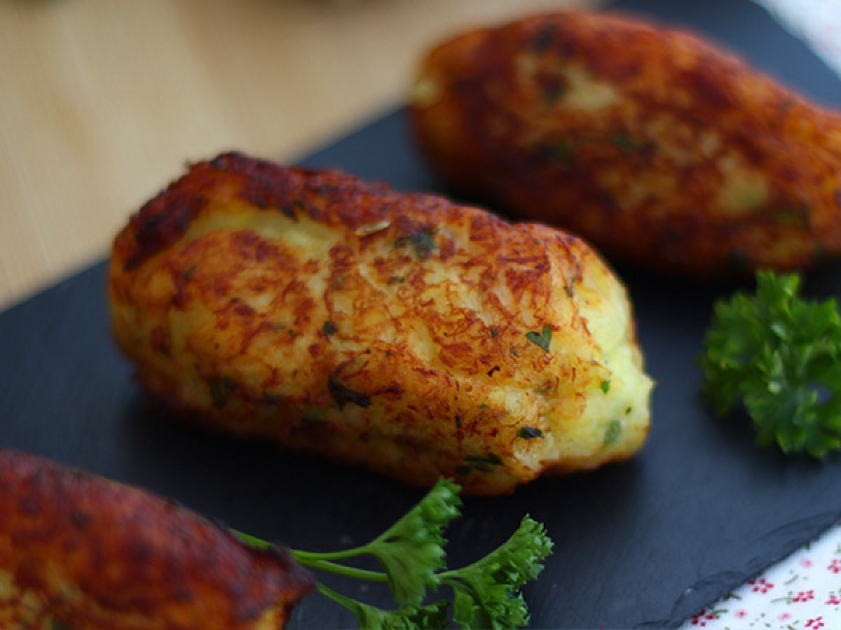 Diese Kroketten in heißem Frittieröl von allen Seiten goldbraun frittieren.