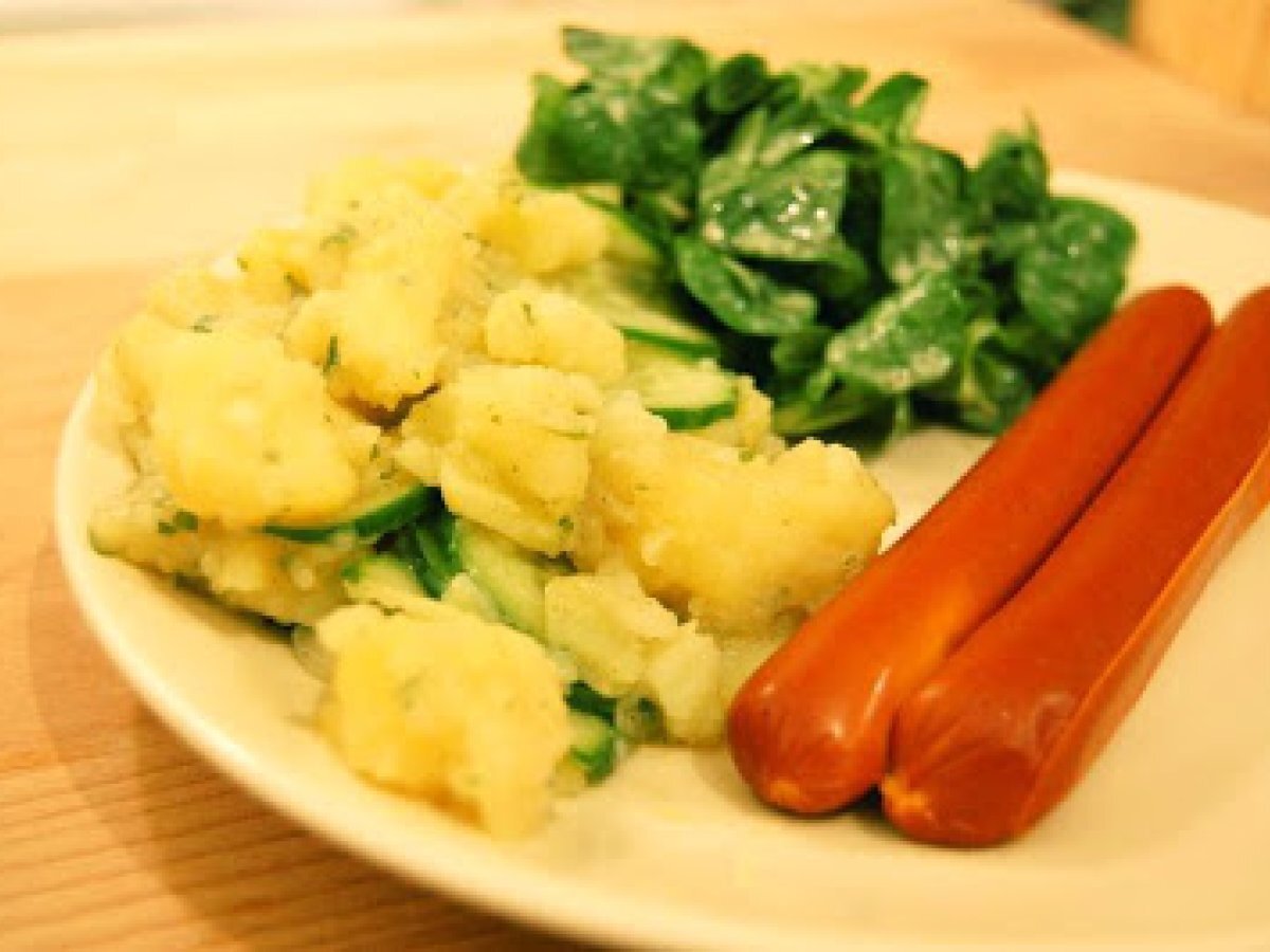 - Gurken in dünne Scheiben schneiden und die Kartoffeln.
