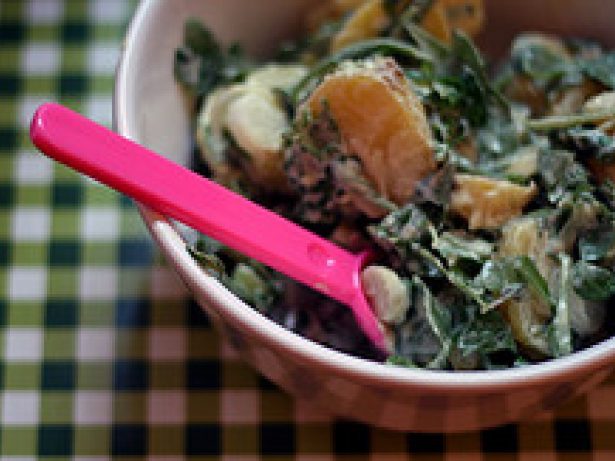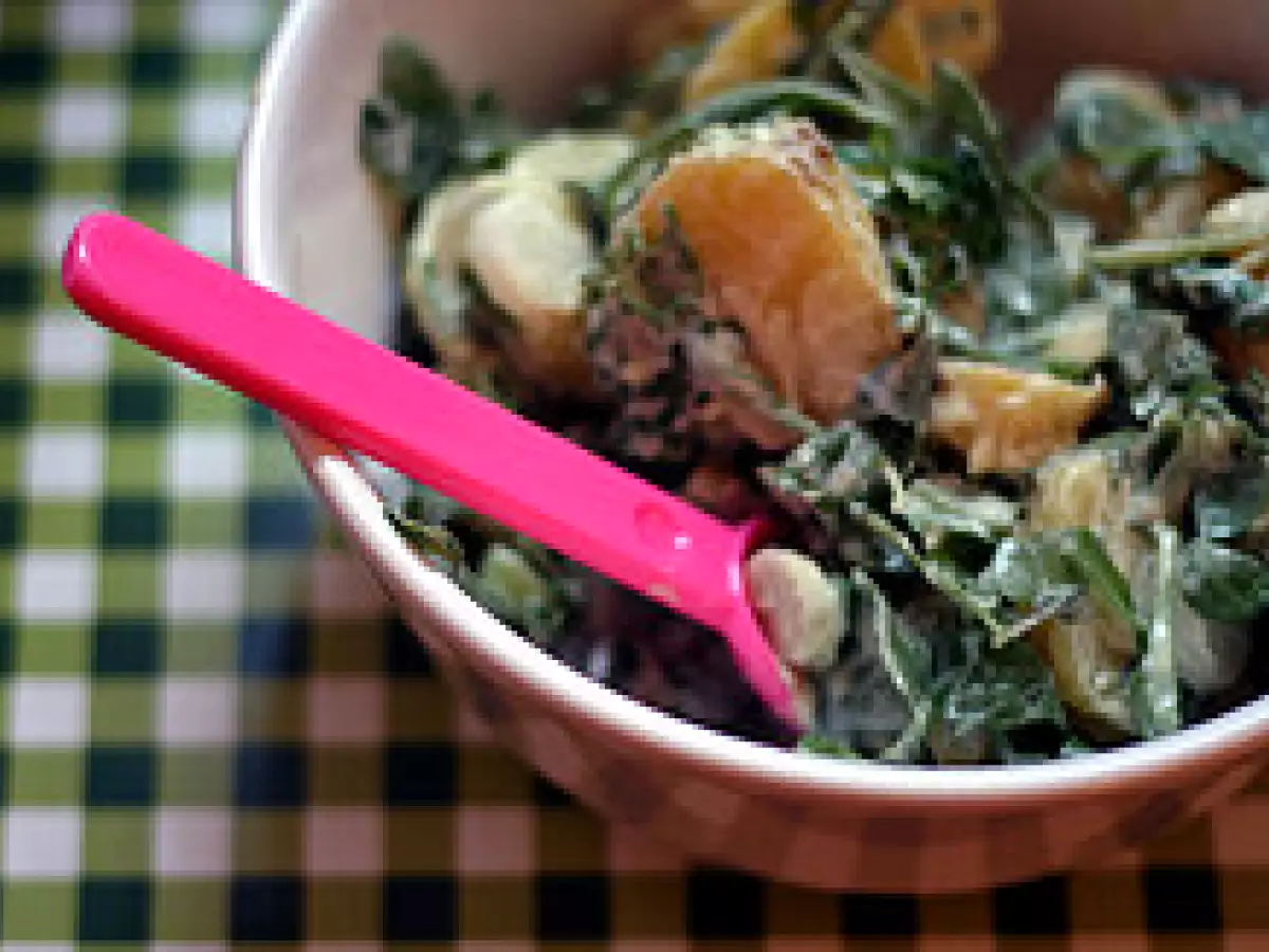 Kartoffel-rucola-salat mit senf-minze-dressing