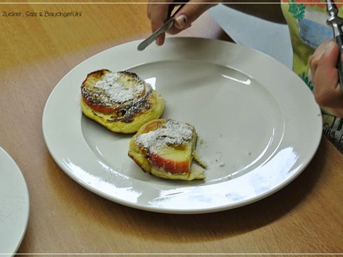 Kinder in der küche: mini apfelpfannkuchen