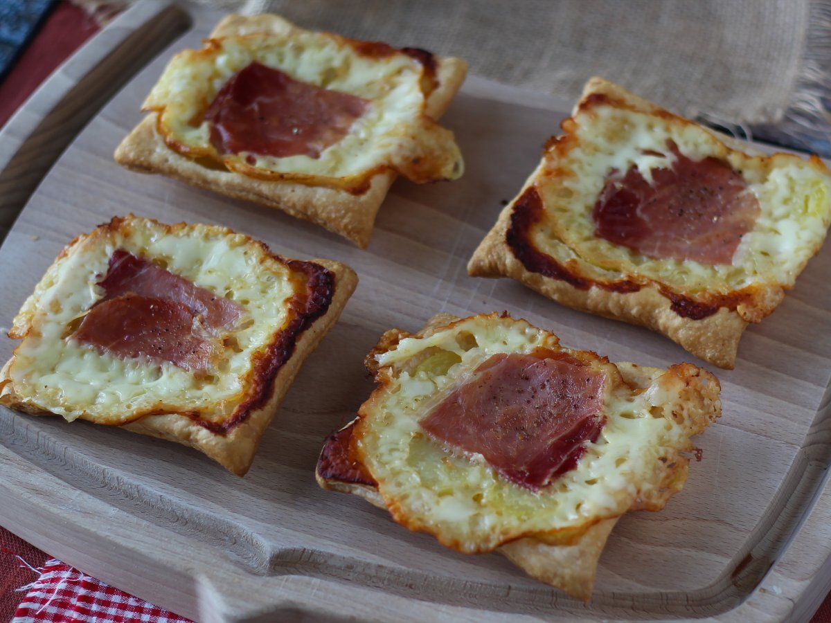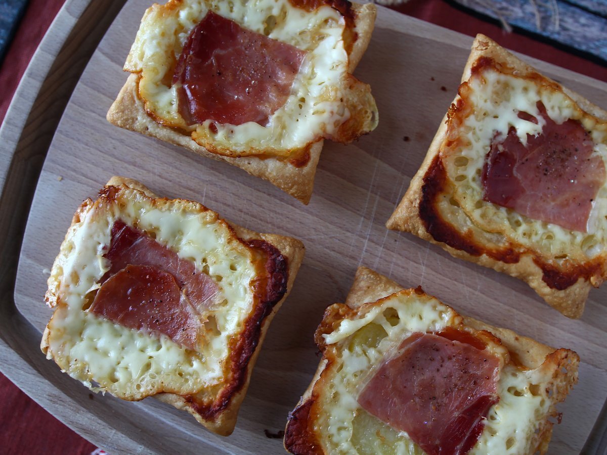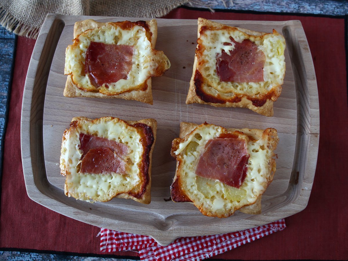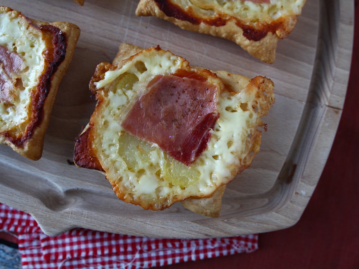 Kleine tatin-törtchen mit raclette-geschmack, in einzelportionen