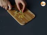 Schälen Sie eine Zitrone, schneiden Sie sie dann in Spalten und entfernen Sie auch die Schalen (die sich zwischen den Spalten befinden). Schneiden Sie nun mit Hilfe eines Messers viele kleine Stücke ab.