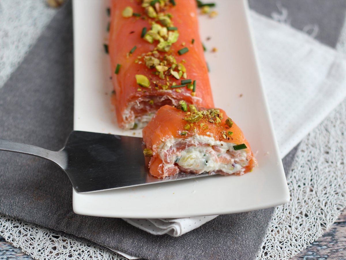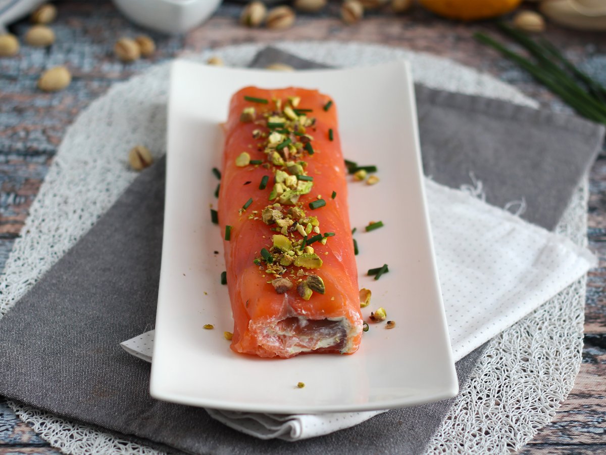 Kein Kochen und einfach zuzubereiten, eine originelle Idee für Weihnachtsfeiern, aber Sie können es das ganze Jahr über servieren, wenn Sie Gäste zum Abendessen haben. Unser herzhaftes Lachsbrötchen (zu Weihnachten schlagen wir es als „gesalzenes Brötchen“ vor) ist mit einer sehr leckeren Ricotta-Creme gefüllt, angereichert mit gekörnten Pistazien, gehacktem Schnittlauch und kleine Stücke reines Zitronenmark: eine ausgewogene Kombination, die Sie mit jedem Bissen in den Wahnsinn treibt. Probieren Sie das Rezept Schritt für Schritt aus, Sie werden ein wunderschönes Gericht zaubern Tisch zum Ansehen und mit einem einzigartigen Geschmack!