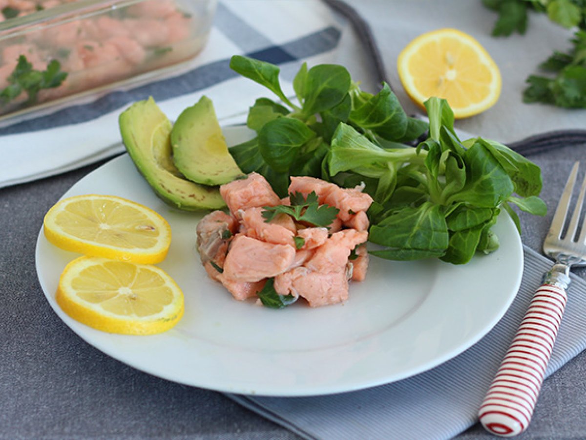 Verleihen Sie Ihrem Fisch mit diesem Rezept für zitronenmarinierten Lachs einen würzigen Geschmack. Eine einfache und vor allem ohne Kochen zuzubereitende Idee, um Ihre Menüs zu verschönern und Ihrer Vorspeise Schwung zu verleihen! Mit einer Extraportion Petersilie, Salz und Pfeffer haben Sie ohne den geringsten Aufwand ein leckeres Rezept :-)