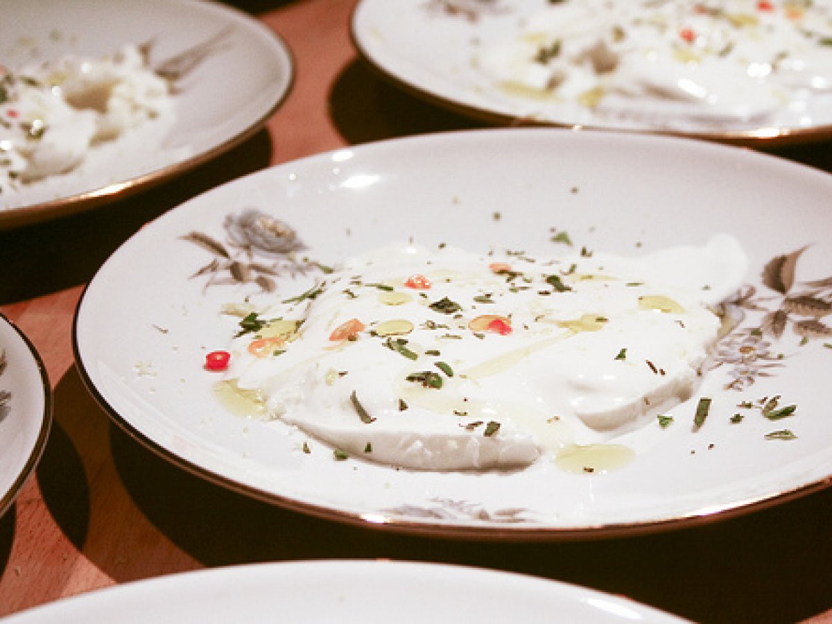 - Joghurt mit etwas Wasser und einer Prise Meersalz zusammen.