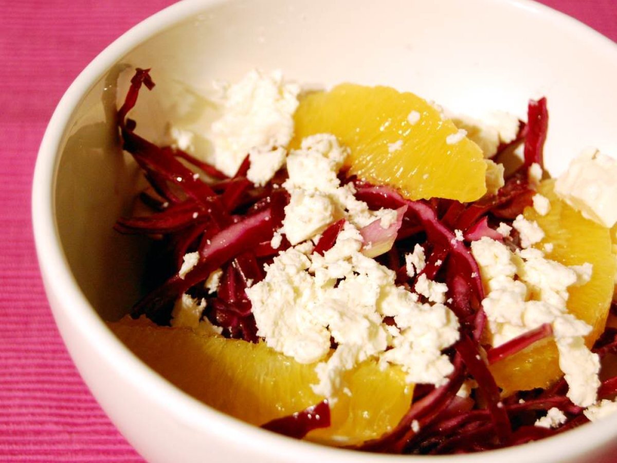 Gießen Dressing über den Salat und vorbereitet ca. 1 Stunde im Kühlschrank abgedeckt, um zu marinieren, mischen Sie es nach 30 Minuten, nachdem alle. - Die fein hacken Fenchel verlässt. Vereinbaren Salat, Schafskäse über die Krümel und garniert mit Orangenscheiben und Fenchelgrün.