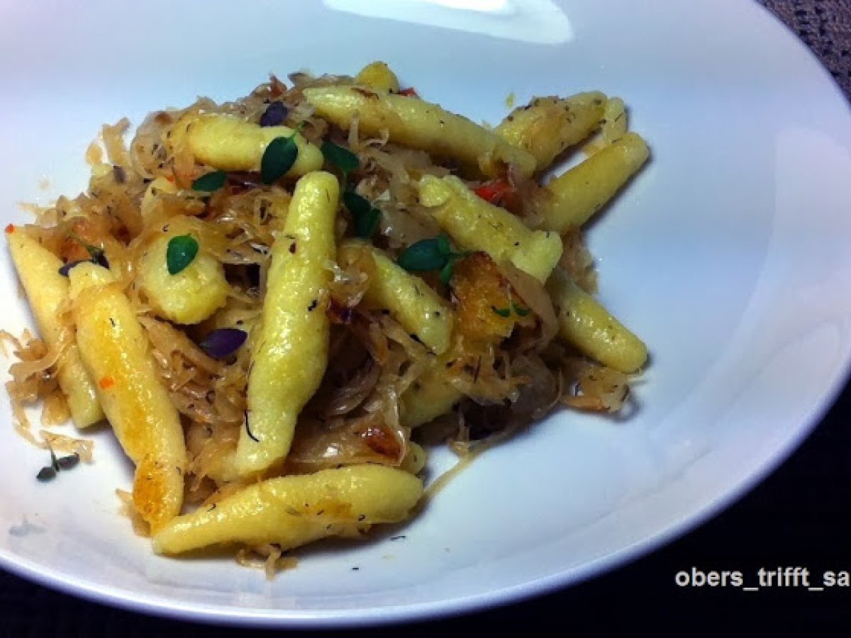 - 250 gr. 1 Stück Zwiebel Sauerkraut, Saison mit 1 Prise. Kümmel und alles köcheln in einem Topf mit 2 EL. Bei Esslöffel Öl, bis die Flüssigkeit verdampft Kohl.
