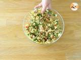 Begleitet von einem Grill, für ein Picknick oder eine Mahlzeit ohne Kopfschütteln wird das Taboulé perfekt sein! Frisch, genießen Sie dieses Rezept voller Aromen dank der gehackten Kräuter. Hier wird nicht gebacken! Mischen Sie einfach Ihre Lebensmittel zusammen und lassen Sie den Weizengrieß im Kühlschrank aufblasen. Praktisch, wenn Sie keinen Ofen haben ;-) Eine perfekte Alternative auch, wenn Sie ein veganes Rezept unkompliziert zubereiten möchten! Fügen Sie die Rohkost Ihrer Wahl hinzu und los geht's zum Vegan-Test!