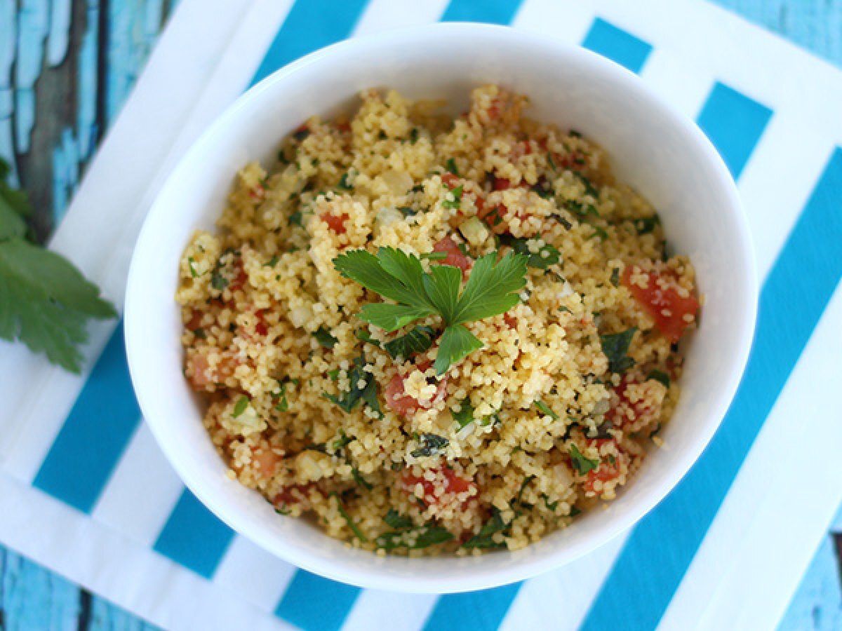 Gut umrühren und 2 Stunden kühlen lassen. Der Grieß wird mit Olivenöl und Zitronensaft anschwellen. Vor dem Servieren gut umrühren.