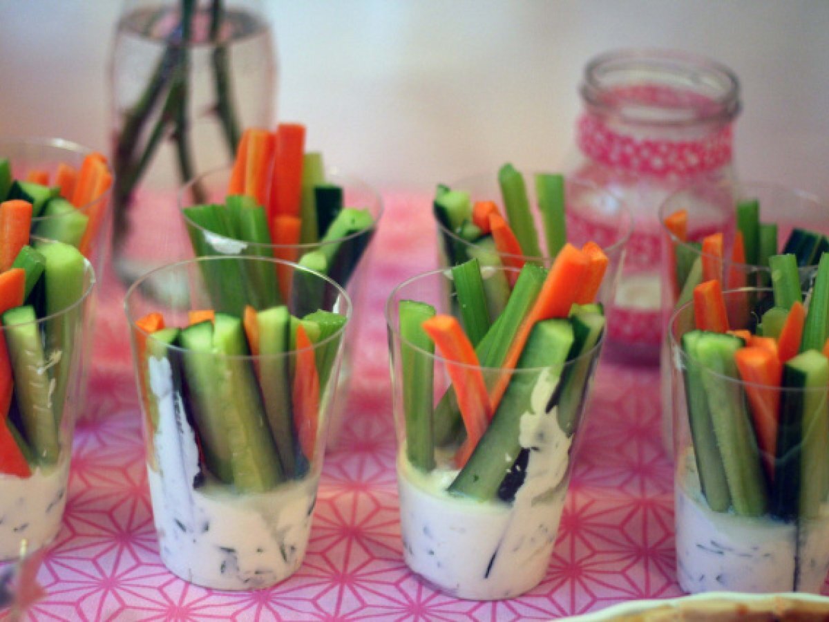 - Das gemüse waschen, putzen bzw. schälen & in längliche stücke schneiden. abwechselnd in die gläser zum dip stecken.