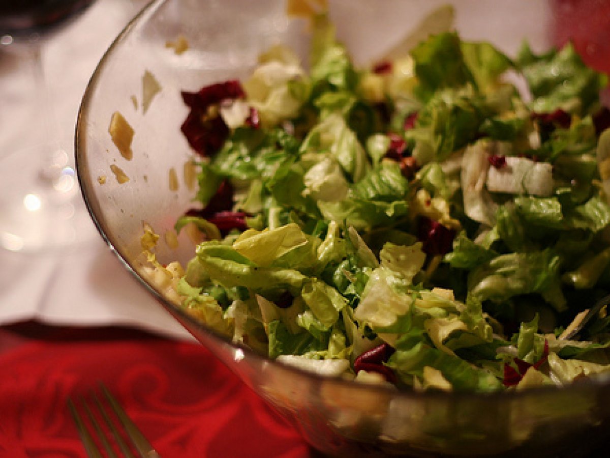 - Salad Lesen, lassen abspülen und abtropfen lassen oder auswringen.