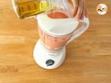 Fügen Sie das Olivenöl nach und nach hinzu, während Sie die Mischung pürieren.