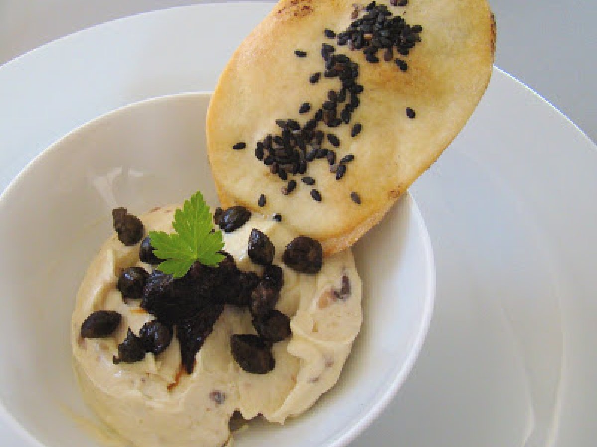 Sardellencreme/tapenade/frittierte kapern/orangenoliven/kräuterbeignet