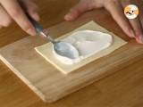 Tragen Sie frische Sahne auf 4 Blätterteigrechtecke auf.