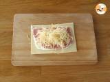 1/2 Scheibe Schinken und geriebenen Käse hinzufügen.