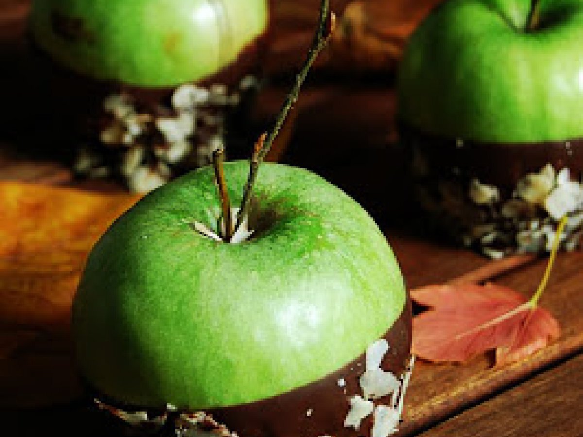 - Metter Äpfel auf einem Block und lassen Sie es trocken Schokolade.