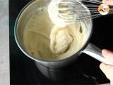 Die Butter in einem Topf schmelzen, dann das Mehl nach und nach hinzufügen und mit einem Schneebesen verrühren. Zum Schluss die Milch nach und nach hinzufügen und mit dem Schneebesen verrühren. Salz und Pfeffer hinzufügen und vermischen.