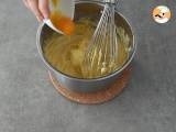 Trennen Sie das Eiweiß vom Eigelb. Geben Sie die Eigelbe einzeln zur Zubereitung hinzu und verrühren Sie dabei den Teig.
