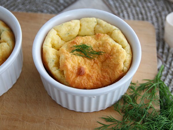 Servieren Sie die Soufflés direkt aus den Förmchen, um ihre luftige Textur zu bewahren, und garnieren Sie sie mit frischem Dill oder Zitronenscheiben für einen zusätzlichen Geschmack.