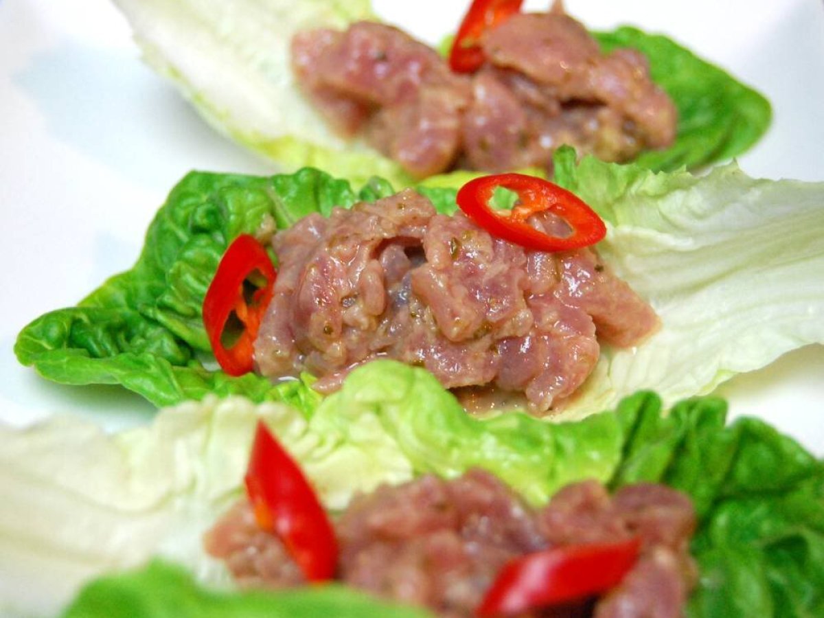 - Tuna in kleinen Portionen auf Salatblätter, Rollen Roggen oder drapiert Löffel.