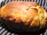 - Die Torte mit der Eigelbmasse Bürste. In einem heißen Ofen bei 200 Grad auf der Unterseite Rack von 35-40 min. Bake. Warm servieren.