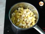 Kartoffeln und Topinambur schälen und in Würfel schneiden.