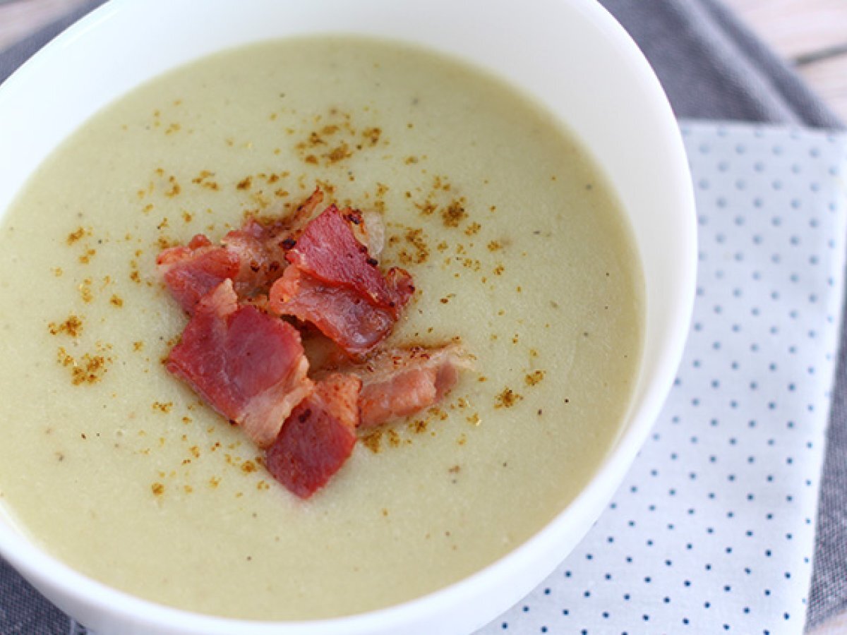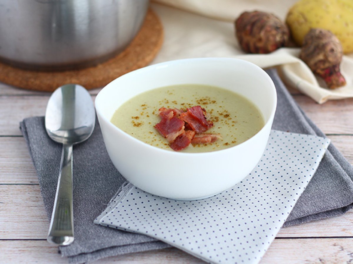 Topinambursuppe, kartoffeln und speck