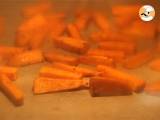 Die Süßkartoffel schälen und in Pommes schneiden. Die Stücke mit Olivenöl, Salz, Pfeffer und Curry vermischen und für 15 Min. bei 210°C in den Ofen geben. Abkühlen lassen.