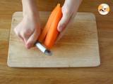 Die Karotten schälen und mit einem Sparschäler in Streifen raspeln. Den Kohl in Streifen schneiden. Salatblätter schneiden.