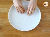 Falten Sie die Galette von unten nach oben und spannen Sie die Füllung darin gut fest. Anschließend die Seiten zur Mitte falten und die Frühlingsrolle aufrollen.