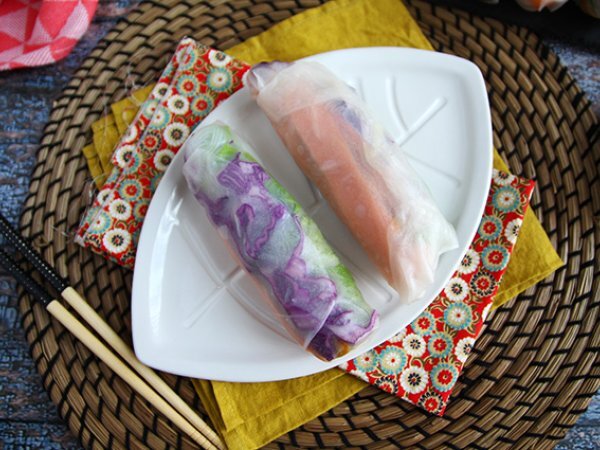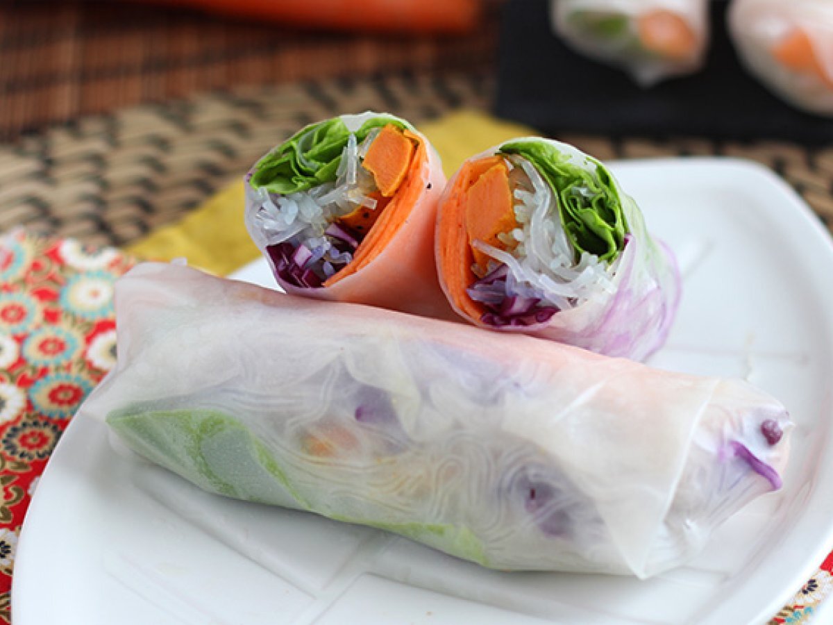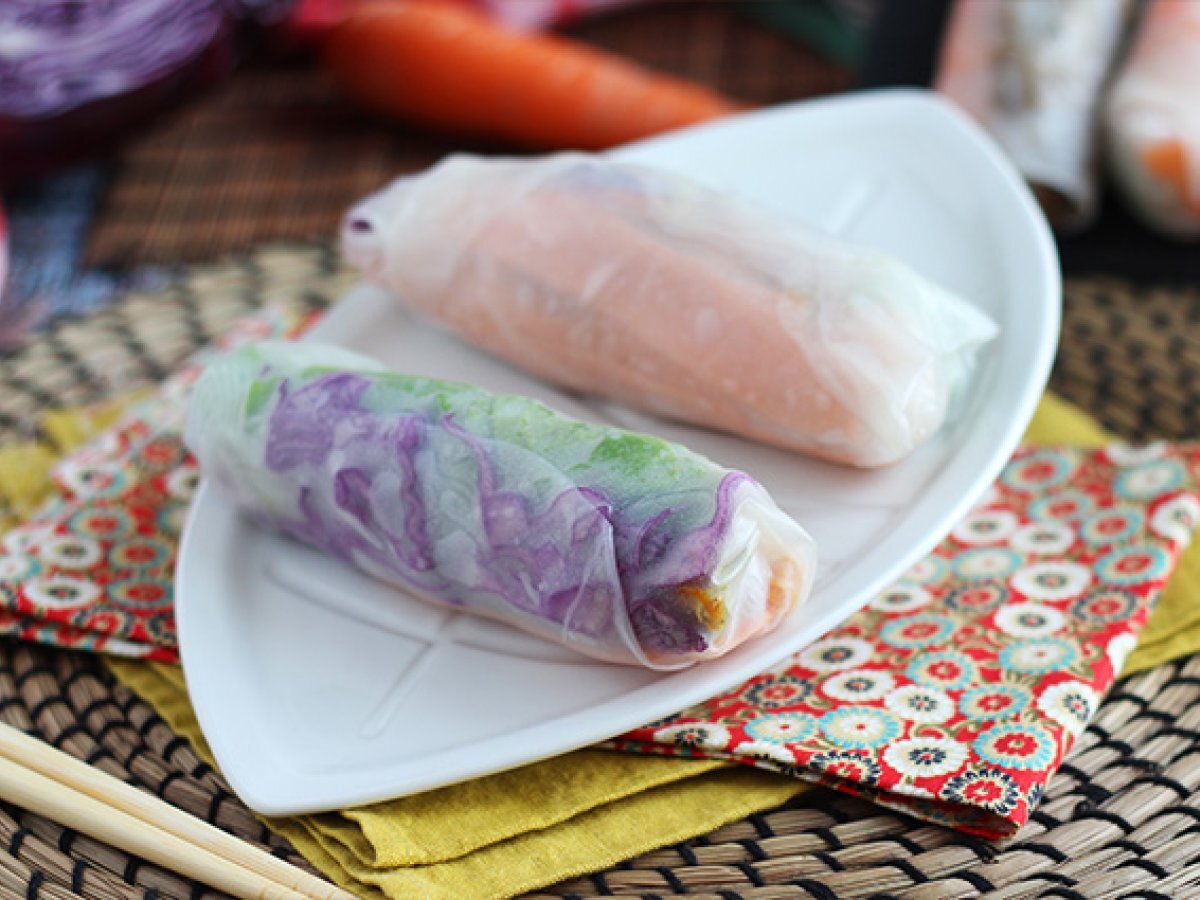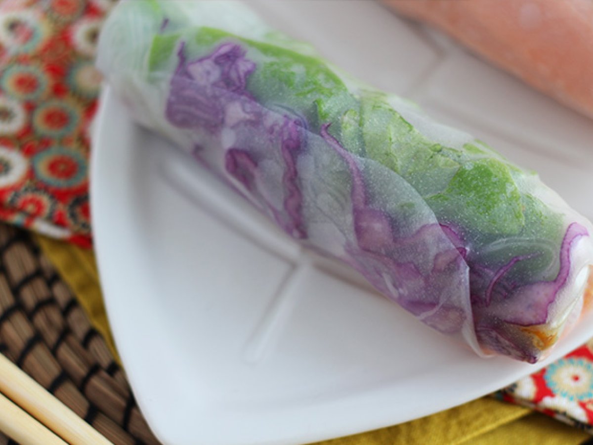 Vegetarische frühlingsrollen – rotkohl und süßkartoffel