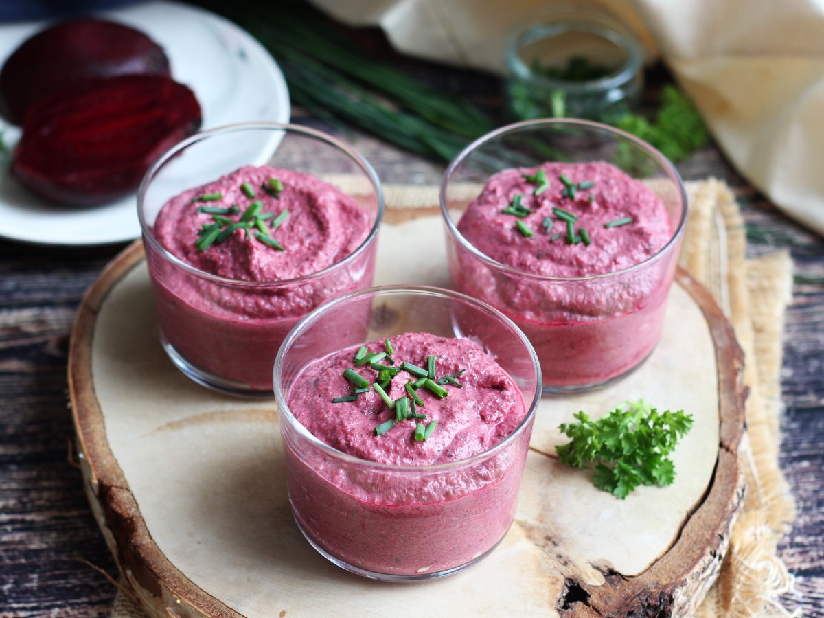 Möchten Sie Farbe in Ihrer Speisekarte? Die Rote Bete wird dabei Ihr bester Freund sein! Einfach mit frischem Käse und ein paar Kräutern zum Würzen vermischt, erhältst du superfrische Rote-Bete-Cremes. Probieren Sie es aus, wir können Ihnen versichern, dass Sie es lieben werden ;-) Und es ist super einfach und ohne Kochen zuzubereiten: Was will man mehr?!