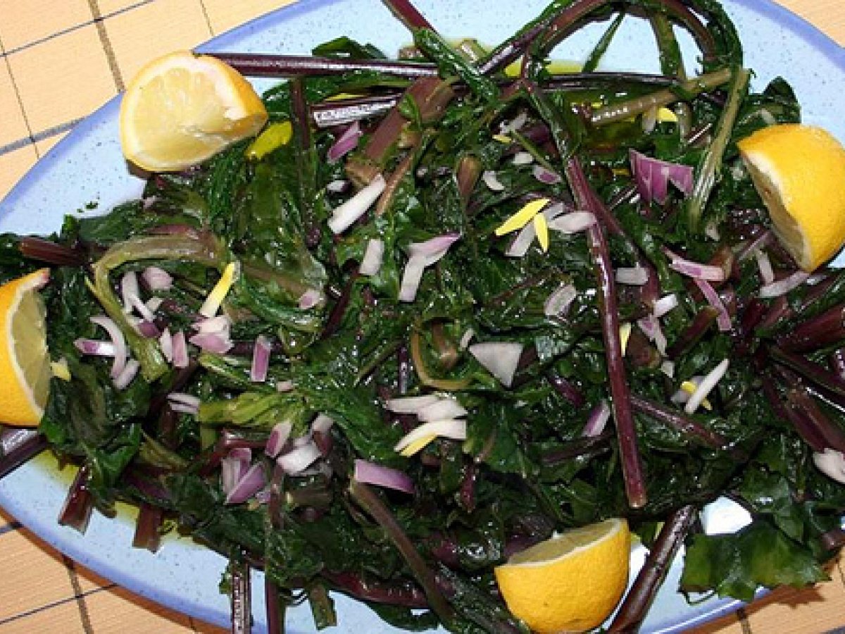 - Die Vlita Blätter samt den Stengeln waschen und für 10 Minuten ins kochende Wasser geben und kochen.