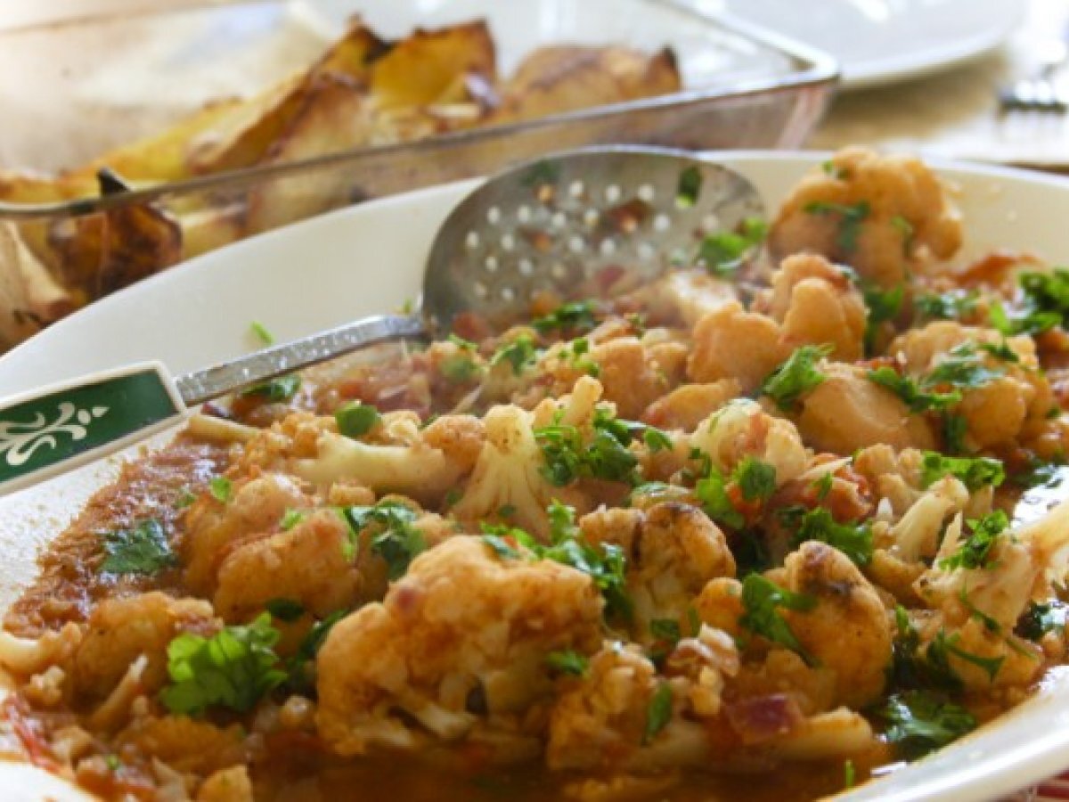 - Jetzt ist der Blumenkohl und die Tomaten, ein wenig Wasser, wenn nötig.