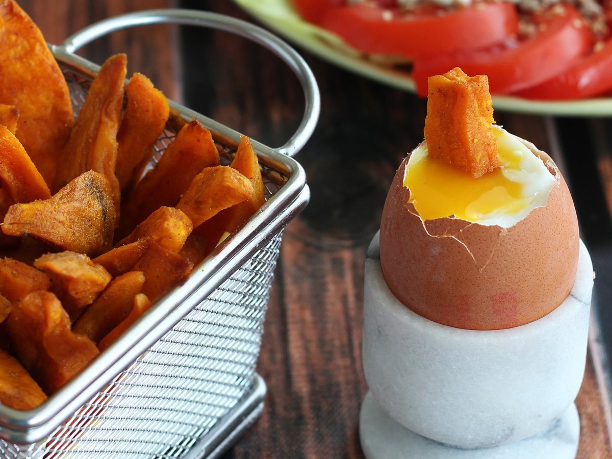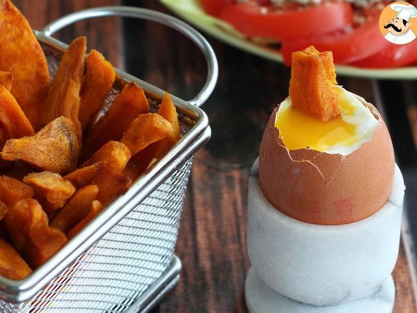 Für ein einfaches, effektives und vor allem regressives Abendessen bereiten wir gerne weichgekochte Eier zu. Und zusätzlich zu den frischen Brottupfern machen wir auch Süßkartoffel-Pommes zum Dippen! Kurz gesagt, wir können versichern, dass es Ihnen gefallen wird ;-)