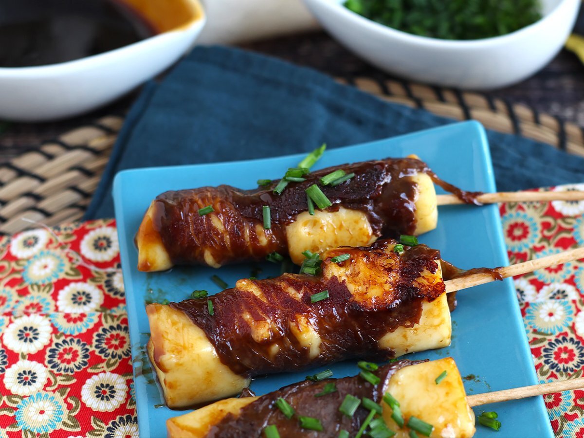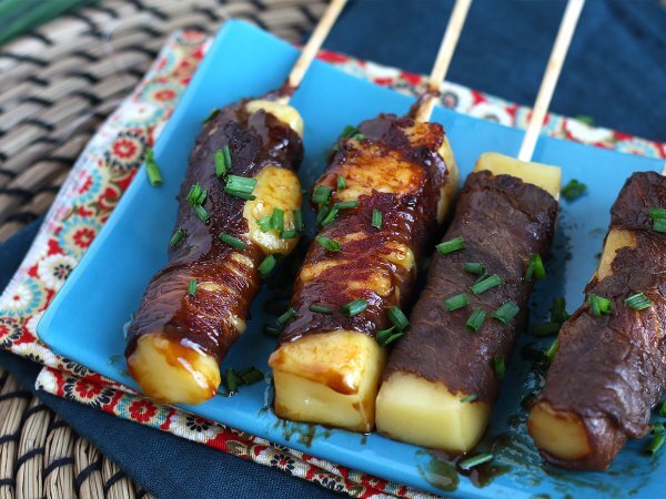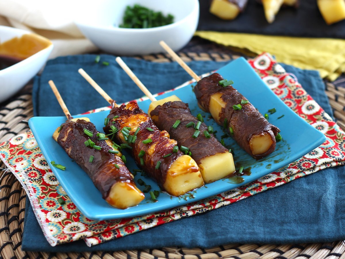 DAS Aperitif-Rezept, bei dem sich alle einig sind: Yakitori! Diese japanischen Spieße kombinieren in Yakitori-Sauce mariniertes Rindfleisch und Hartkäse. Darüber hinaus finden Sie dieses Rezept in den meisten japanischen Restaurants in Frankreich, jedoch nicht im Reich der aufgehenden Sonne. Tatsächlich ist dieses Rezept eine Kreation japanischer Gastronomen, die wissen, wie sehr die Franzosen im Gegensatz zu den Japanern Käse lieben :-)