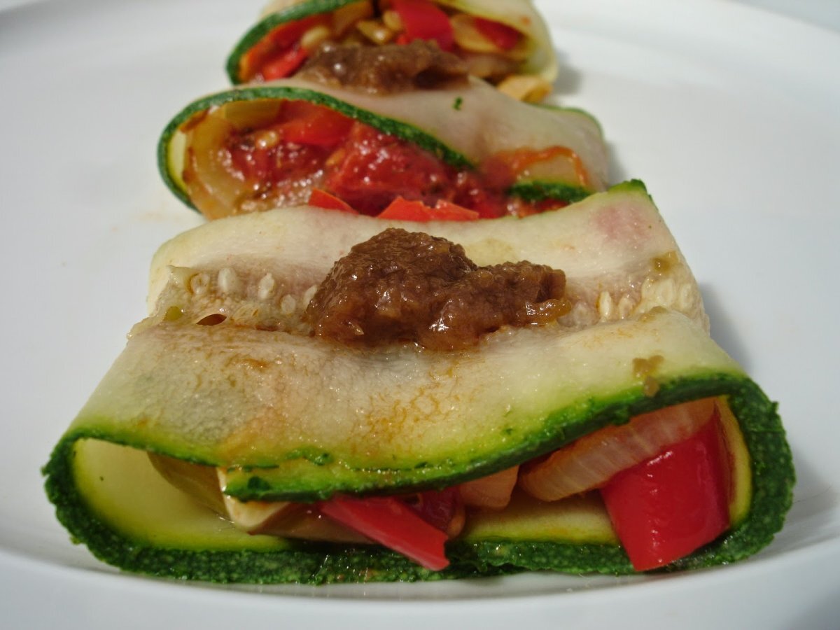 Zucchini gefüllt mit pistou und olivenmarmelade