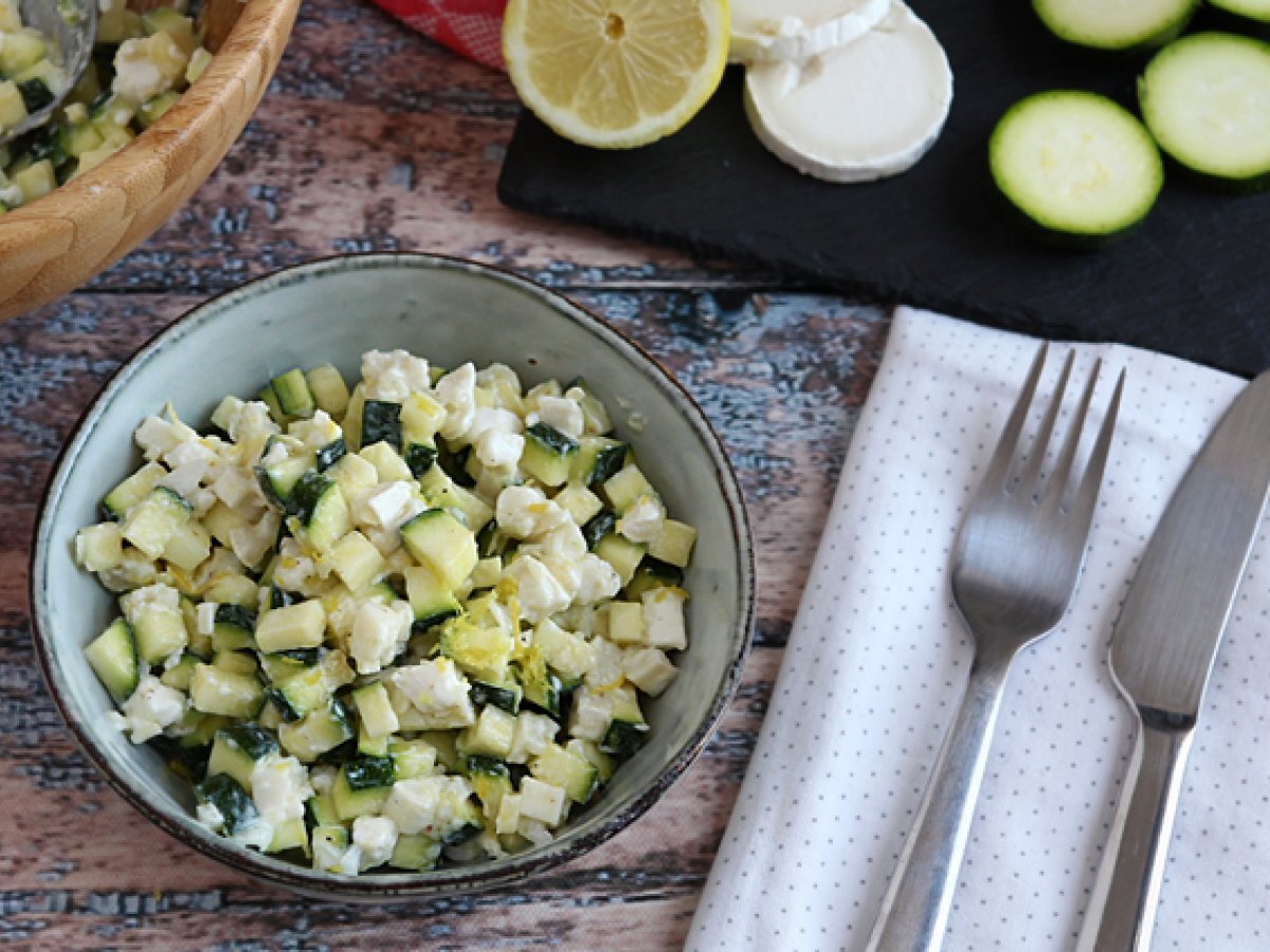 Wir haben einen einfachen und erfrischenden Salat für Sie! Kombinieren Sie die Knusprigkeit von Zucchini mit der Weichheit von Ziegenkäse. Alles gewürzt mit einer Vinaigrette aus Olivenöl, Zitrone, Knoblauch und Zwiebeln. Perfekt für ein Picknick ;-)