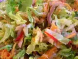 Zutaten: 1-2 Tünche 100 g frische Sahne Eine Prise Zucker 125 g Wintersalat {zB Gelockt, Eichenblatt oder Pflücksalat} 2 Esslöffel Apfelsaft Suppe Öl 4...