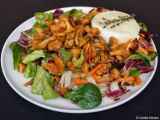 Zutaten: Für den Salat: Mézclum (Rucola und Feldsalat) ½ rote Zwiebel 4 Kirschtomaten Kikos (gebratener Mais) Medaillon aus Ziegenkäse Balsamico-Essig-Creme...